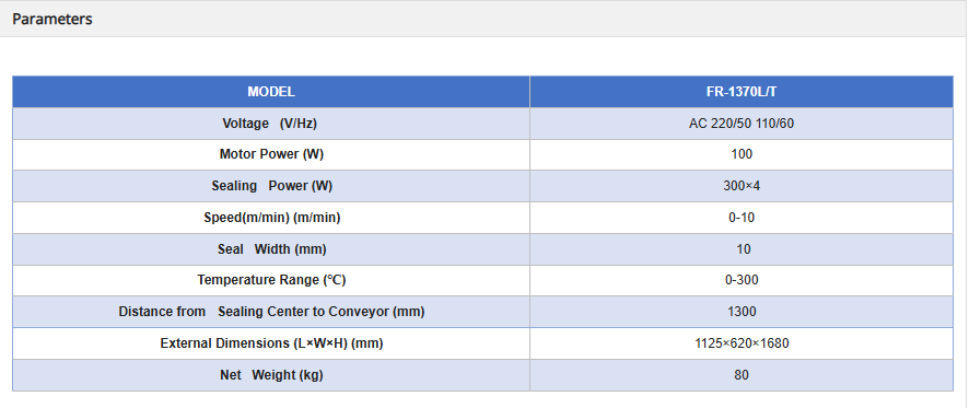 FR-1370 serisi makineler, sırasıyla 5 kg, 10 kg ve 20 kg'ın altındaki ağırlığa sahip kalın film ambalajların ısı ile kapatılması için kullanılan iki adet ısıtma bloğu setidir.