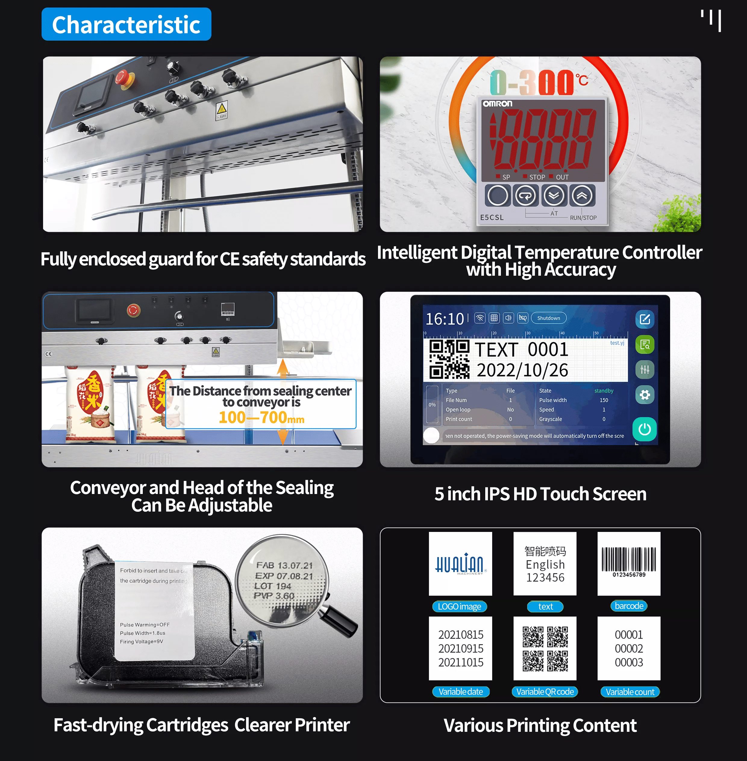 Hualian bant kapatma makinesi, küçük paketleri kapatabilir. Baskı kontrol işletim sistemi, dünya çapında yaygın olarak kullanılan, ücretsiz ve açık kaynaklı Linux işletim sistemini benimser. Sistem güçlü bir kararlılığa ve ölçeklenebilirliğe sahiptir ve uzun süre istikrarlı bir şekilde çalışabilir. Müşteriler, kendi ihtiyaçlarına göre yazı tipi boyutunu, uzunluğunu ve baskının zengin içeriğini serbestçe ayarlayabilir ve makine kendi kapatma sayma fonksiyonuna sahiptir.