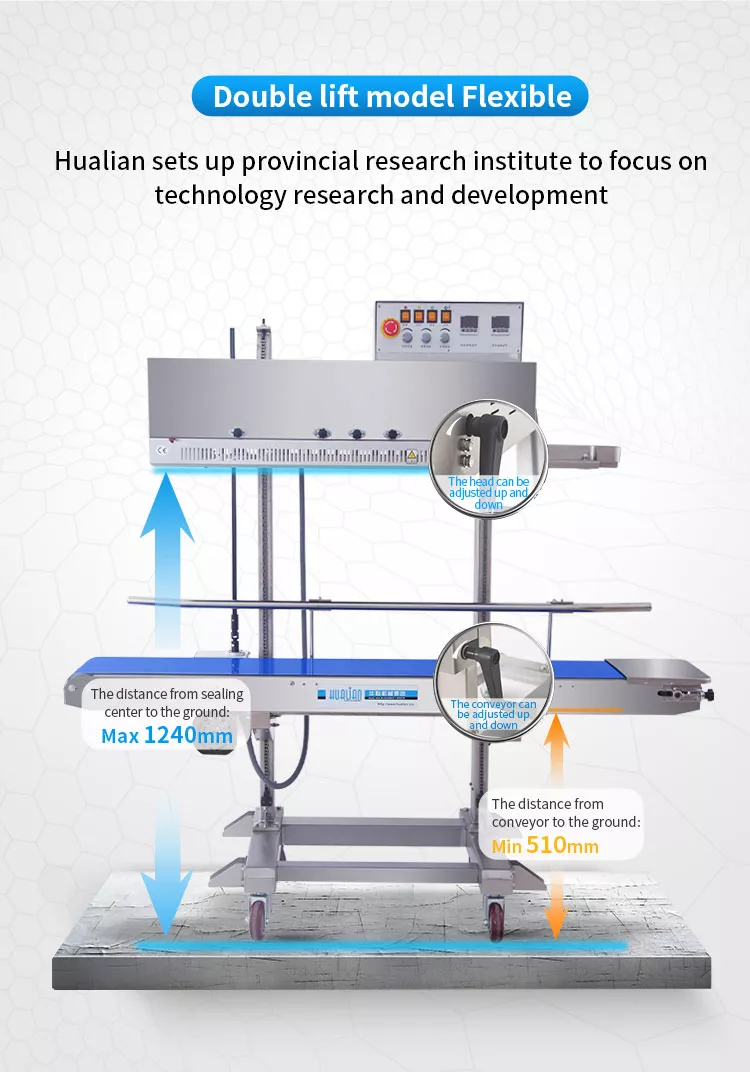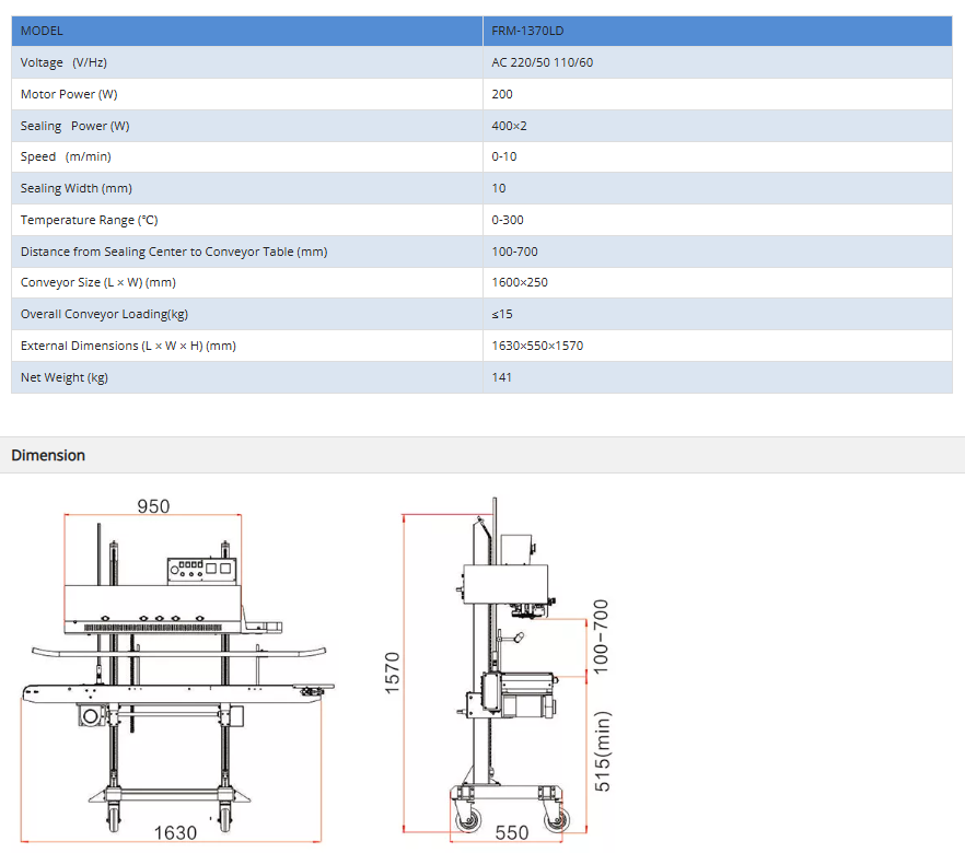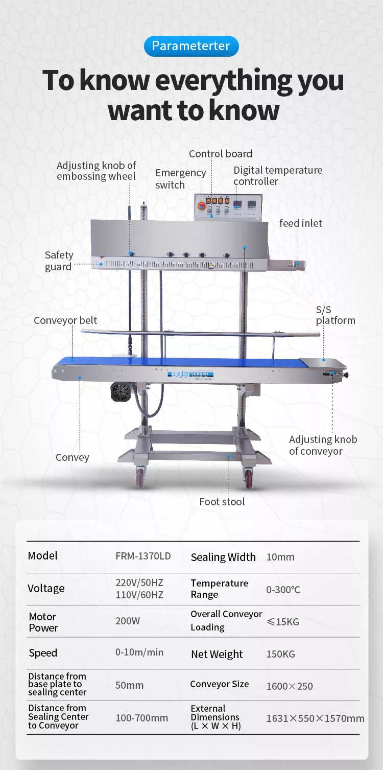 FRM-1370LD modelinde, hem kapatma başlığının hem de konveyör tablasının yüksekliği, geniş bir uygulama yelpazesine uyum sağlamak için ayarlanabilir.